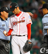 2011.08.30 19: 25물집 잡힌 엄정욱,'3회도 못 던졌는데'