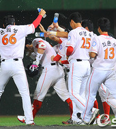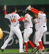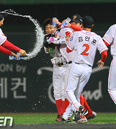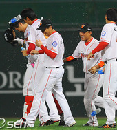 2011.09.01 23: 06정상호,'시원한 끝내기 물세례'