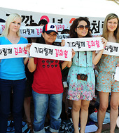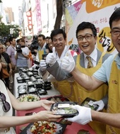 2011.09.01 12: 05한돈자조금 역대 홍보대사들, 명동서 한돈햄 시식행사
