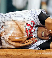2011.09.04 20: 12'강민호와 충돌 후 고통스러워하는 박경수'