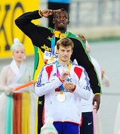 2011.09.04 21: 43혀 빼문 볼트,'나 금메달 두개야!'