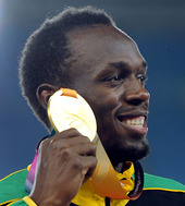 2011.09.04 22: 32금메달을 들고 활짝 웃는 볼트