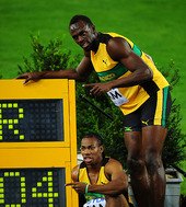 볼트-블레이크,'400m 계주 신기록 기념 포토타임!'