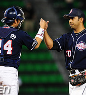2011.09.07 21: 31승리 세리모니 오승환-진갑용,'故 장효조 감독 영전에 승리를'