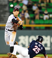 2011.09.07 21: 04한상훈,'병살을 노렸지만...'