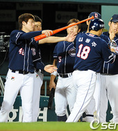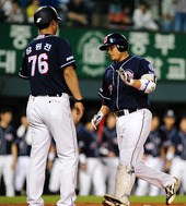 2011.09.07 19: 42김현수, '솔로포 두목공 엉덩이 찰싹'