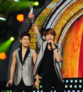 2011.09.08 21: 27인피니트,엠카 트로피를 높이 치켜 들고!