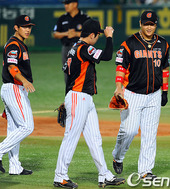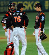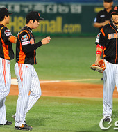 2011.09.14 19: 19이대호-황재균,'원준아! 걱정마! 롯데타선만 믿어!'