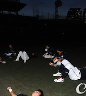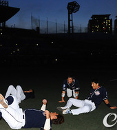 2011.09.15 19: 22누워서 몸푸는 두산,'우천취소 말고 정전취소 되겠는걸'