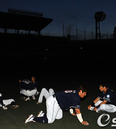 2011.09.15 19: 16드러누운 두산,'어두워서 경기 하겠어?'