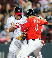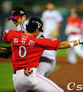 2011.09.15 20: 39김강민-김남석,'1루에서 강한 충돌!'