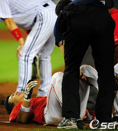 2011.09.15 20: 43다리 부상입고 고통스러워 하는 김강민