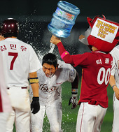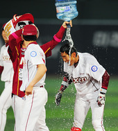2011.09.16 22: 16축하 물세례 받는 고종욱