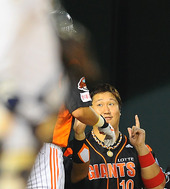 2011.09.17 18: 49익살스러운 이대호,'준우야! 너도 연타석 홈런 어때?'
