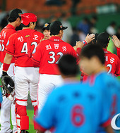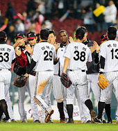 2011.09.21 22: 05자축하는 LG 선수들, '잘했어!'