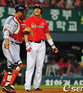 만루찬스 놓치는 최동수,'아! 역전하기 힘드네'