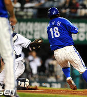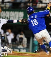 2011.09.27 19: 32박석민, '태그를 피했다?'