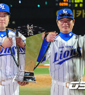 2011.10.03 18: 34진갑용-정현욱, '우승 트로피가 무겁네요'