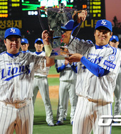 2011.10.03 18: 27류중일-진갑용, '우승 트로피 들고 파이팅'