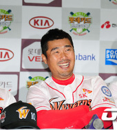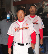 2011.10.07 14: 54활짝 웃는 이만수 감독 이호준 정근우
