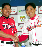 2011.10.07 14: 07선전을 다짐하는 이만수 조범현 감독