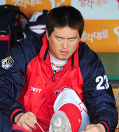 2011.10.08 12: 09최희섭,'신발끈을 매며 각오를 다져'
