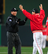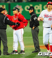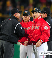 2011.10.11 20: 41강하게 항의하는 이만수 감독 대행