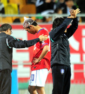 2011.10.11 21: 47부상으로 경기장을 떠나는 박주영