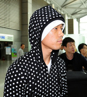 2011.10.12 13: 19머리 부상으로 후드 쓰고 출국하는 박주영