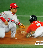 2011.10.12 18: 58정근우,'모래 바람을 일으키며 도루 성공!'