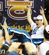 '최다 우승' 추승균, '헹가래 기분 좋아'