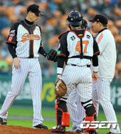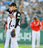 2011.10.16 17: 06박희수 투구 맞는 손아섭