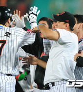 2011.10.17 21: 32황재균,'사율이 형, 세이브 축하해요'