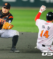 2011.10.19 20: 02황재균,'경기도중 덕아웃으로 점프!'