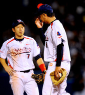 2011.10.25 19: 40임창용,'동갑 후쿠가와와 즐거운 대화'