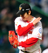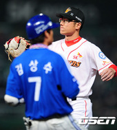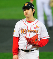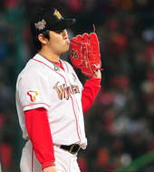 2011.10.28 18: 40입 나온 송은범,'스트라이크 아닌가?'