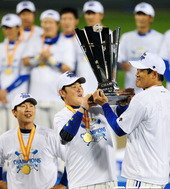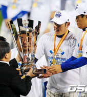 2011.10.31 22: 07우승 트로피 건네는 KBO 구본능 총재