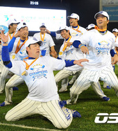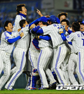 우승의 기쁨을 나누는 삼성
