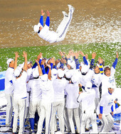 2011.10.31 22: 03행가래 받는 삼성 류중일 감독