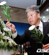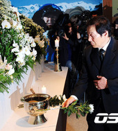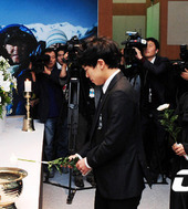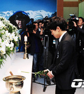 2011.11.03 13: 44'슬픔 속 헌화하는 고 박영석 대장의 유가족들'