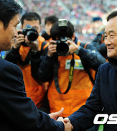 2011.11.19 15: 10'사제대결' 최용수-김호곤, '겉으론 웃고 있지만'