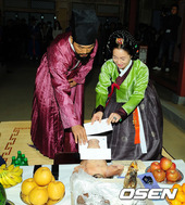 2011.11.19 09: 02백성현-함은정,'돼지머리에 돈봉투를 꽂으며'