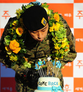 2011.11.21 08: 58주지훈,'제대 축하케이크의 불을 끄며'