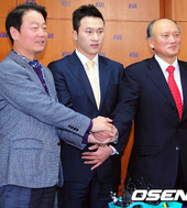 2011.11.24 12: 17김승현-심용섭 단장, 악수로 공개 화해
