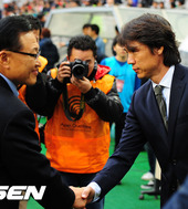 조중연 회장과 악수를 나누는 홍명보 감독