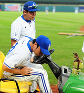 2011.11.29 18: 42노크 배트를 든 '왕년의 슬러거' 아키야마 감독