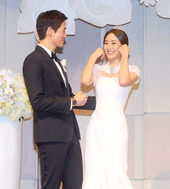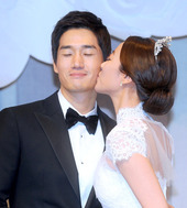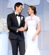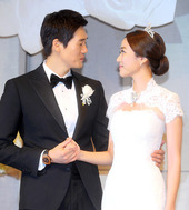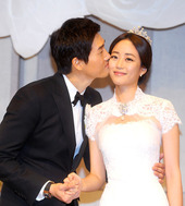 2011.12.02 17: 06유지태,신부 김효진의 볼키스 "너무 행복해요"