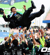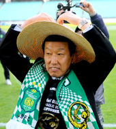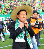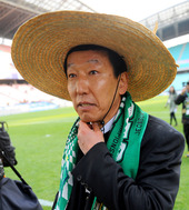 2011.12.04 16: 03장화에 밀짚모자를 쓰고 세리머니를 하는 최강희 감독