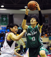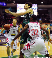2011.12.28 20: 41김주성,'장훈이형을 뚫고 슛!'