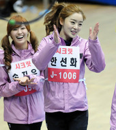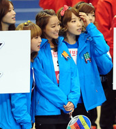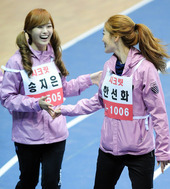 2012.01.08 23: 23'아이돌 육상대회' 송지은-한선화, '오늘 자신있지?'
